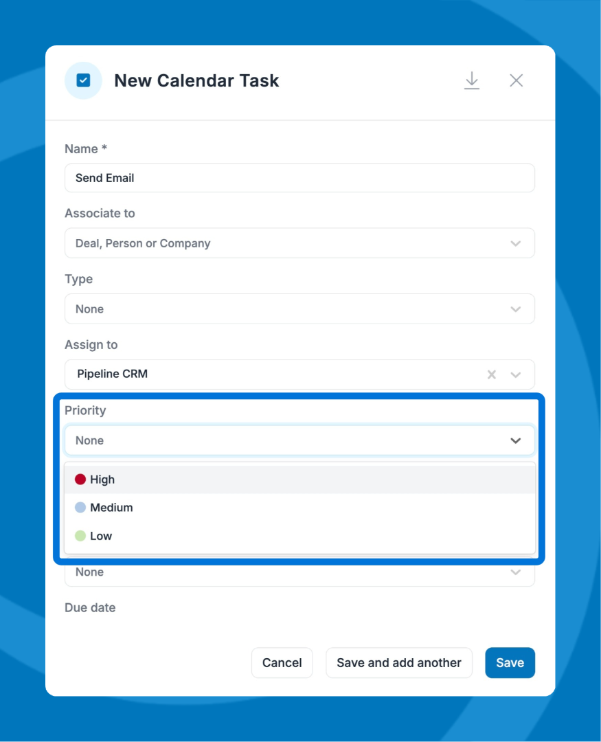 - In the task/event details, choose a Priority (example: High / Medium / Low).