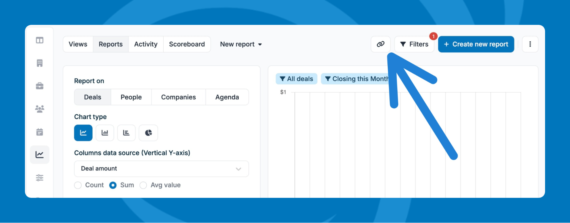 - In the top navigation of the report, click on the 🔗 link icon.