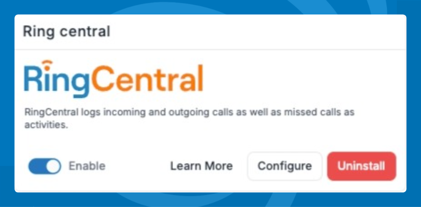 When everything is configured, enable the RingCentral integration from the App Store area.