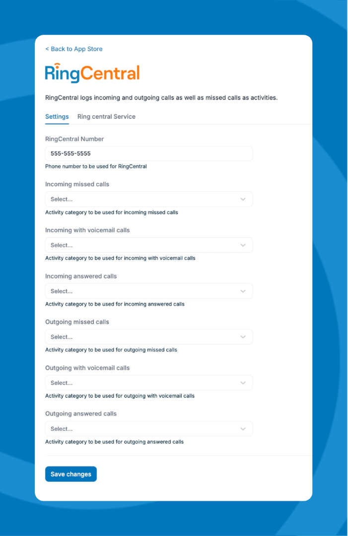 - Map RingCentral call events to Pipeline Activity Categories (you can use existing categories or create new ones).