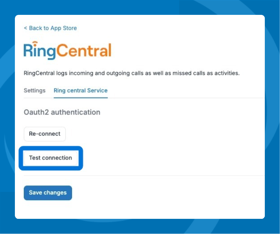 - Select the RingCentral Service tab and click Connect.