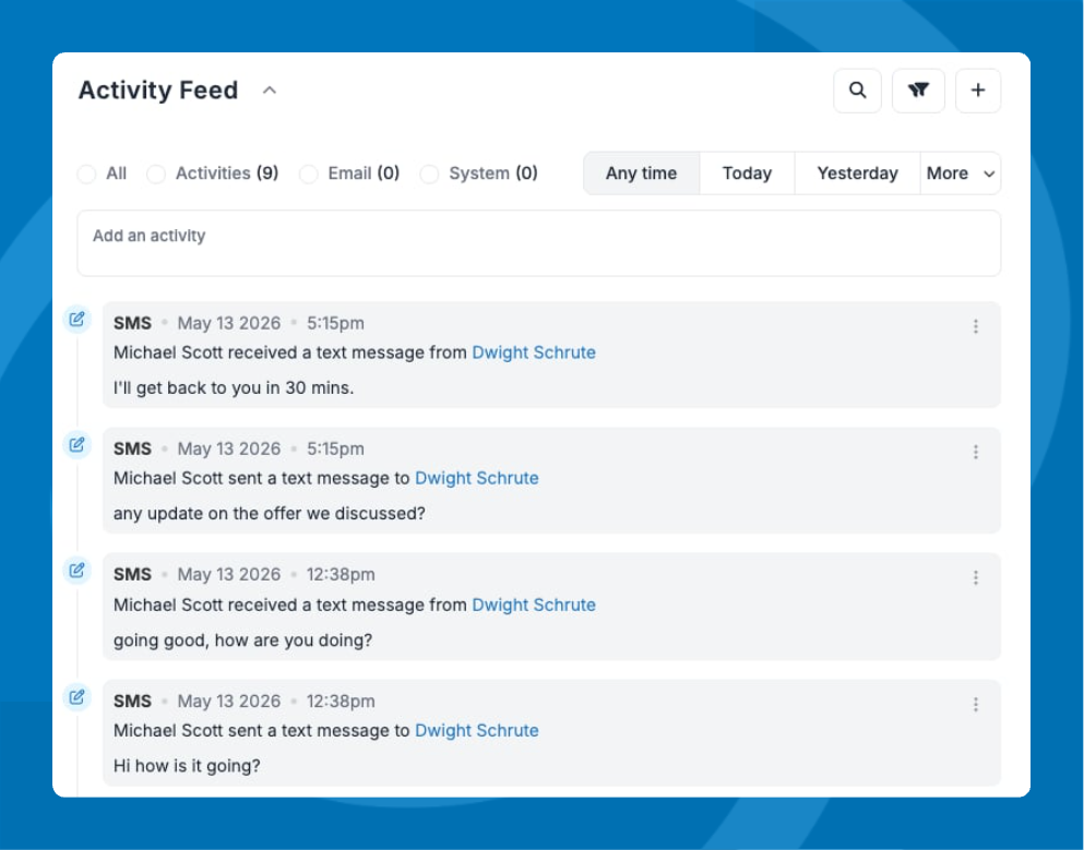💡 Tip: If a contact has both work and mobile numbers, toggle Show settings to choose which number receives the SMS.