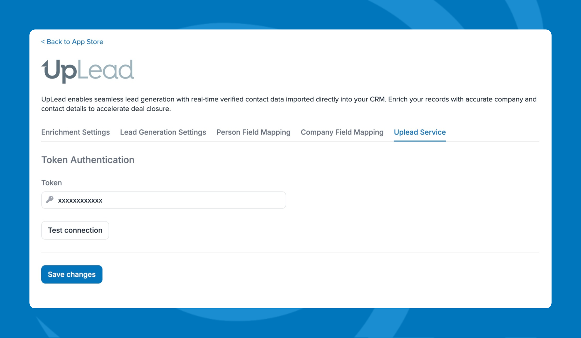 - Copy the API key and paste it into the UpLead Token field.