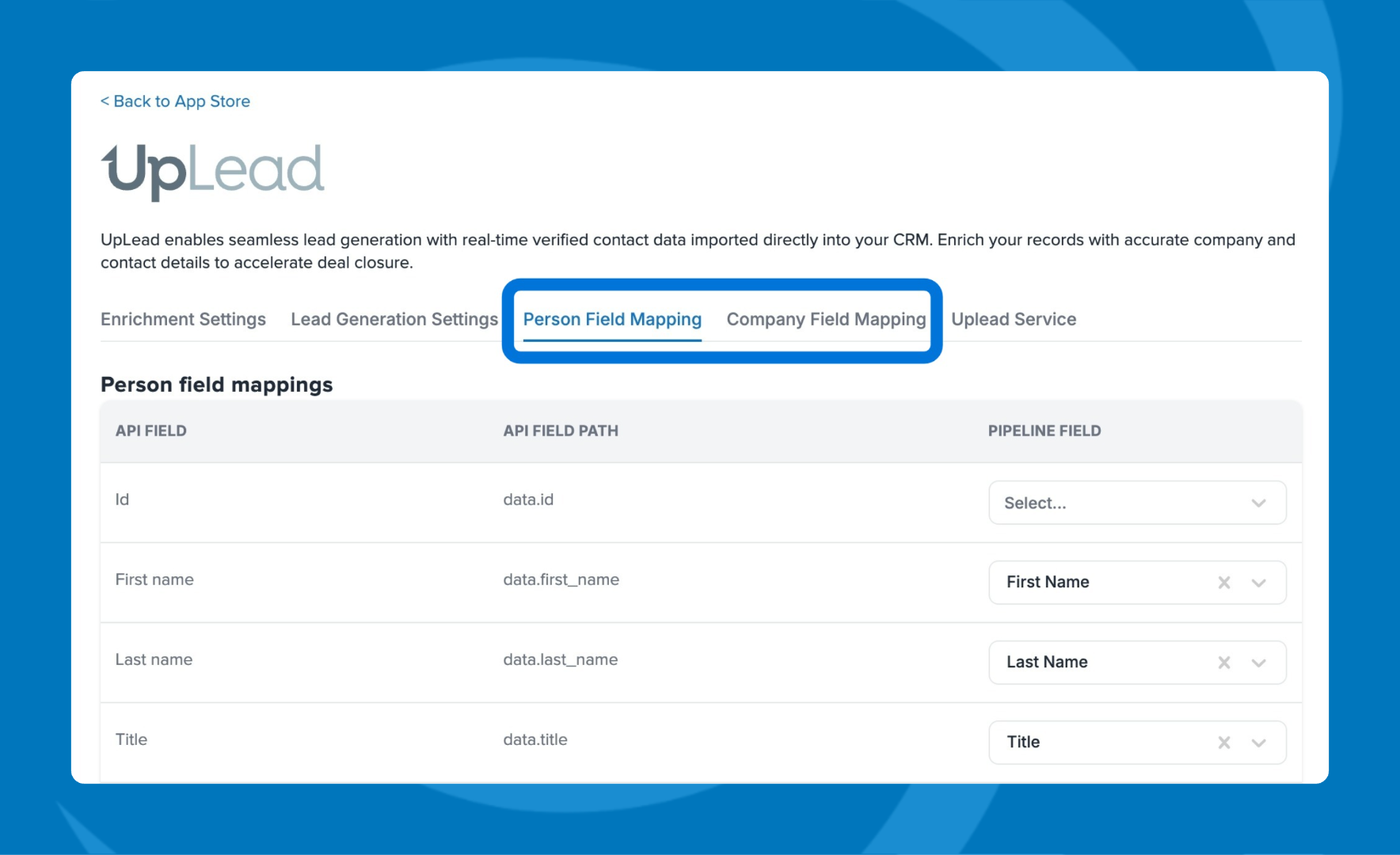 Choose how you want UpLead data to update your Pipeline CRM records: