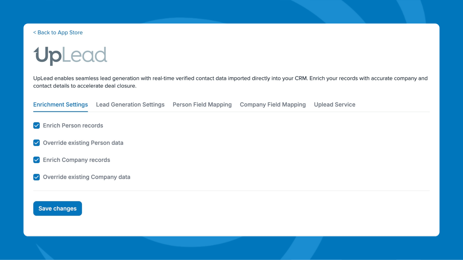 - Override existing company data – Allow UpLead to replace values already stored in company fields when different.