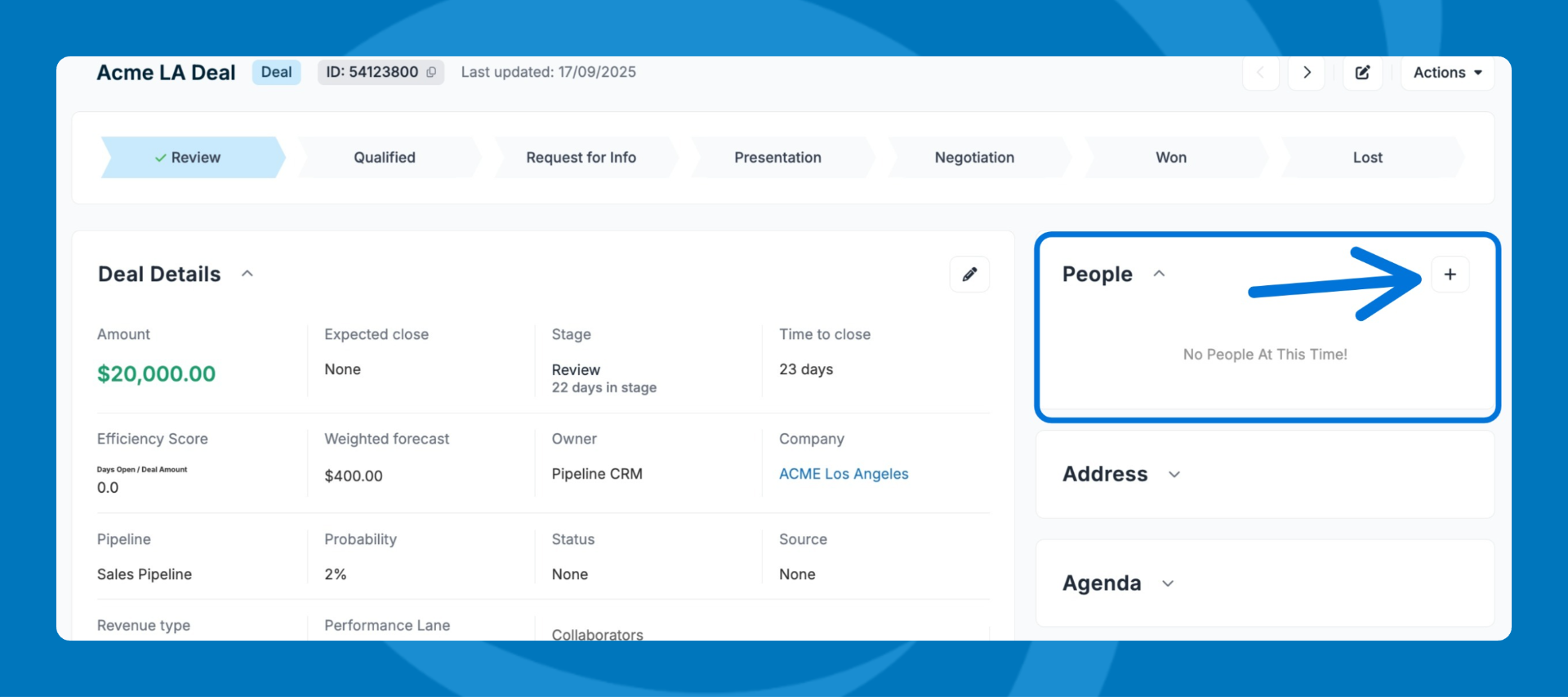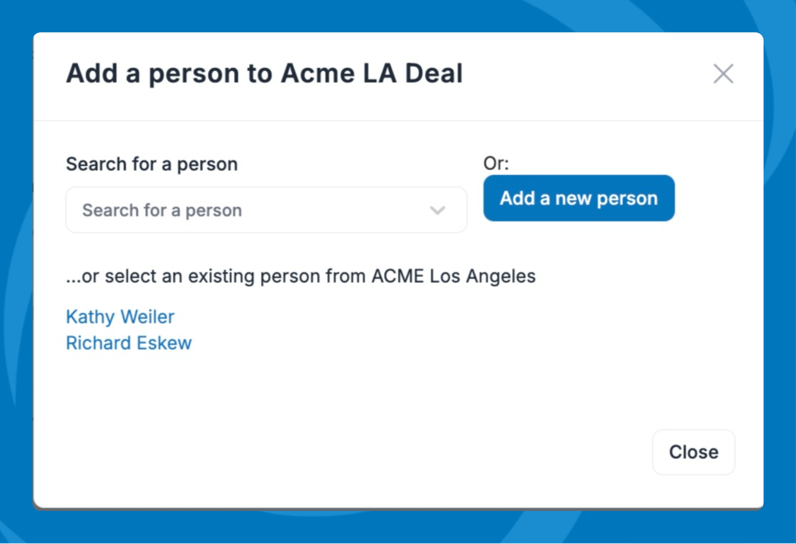 - Set the Primary Contact for the deal to target the right person for calls, emails, or campaigns.