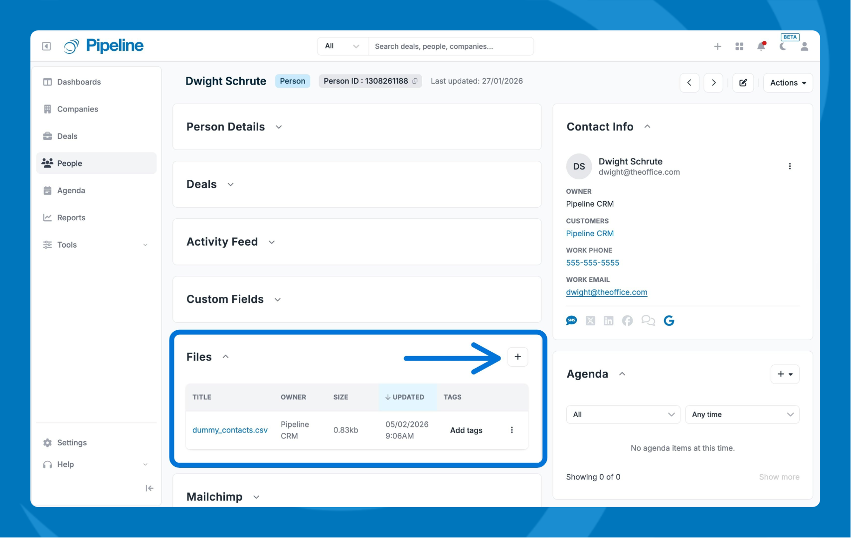 - Open the record where you want to add a file.