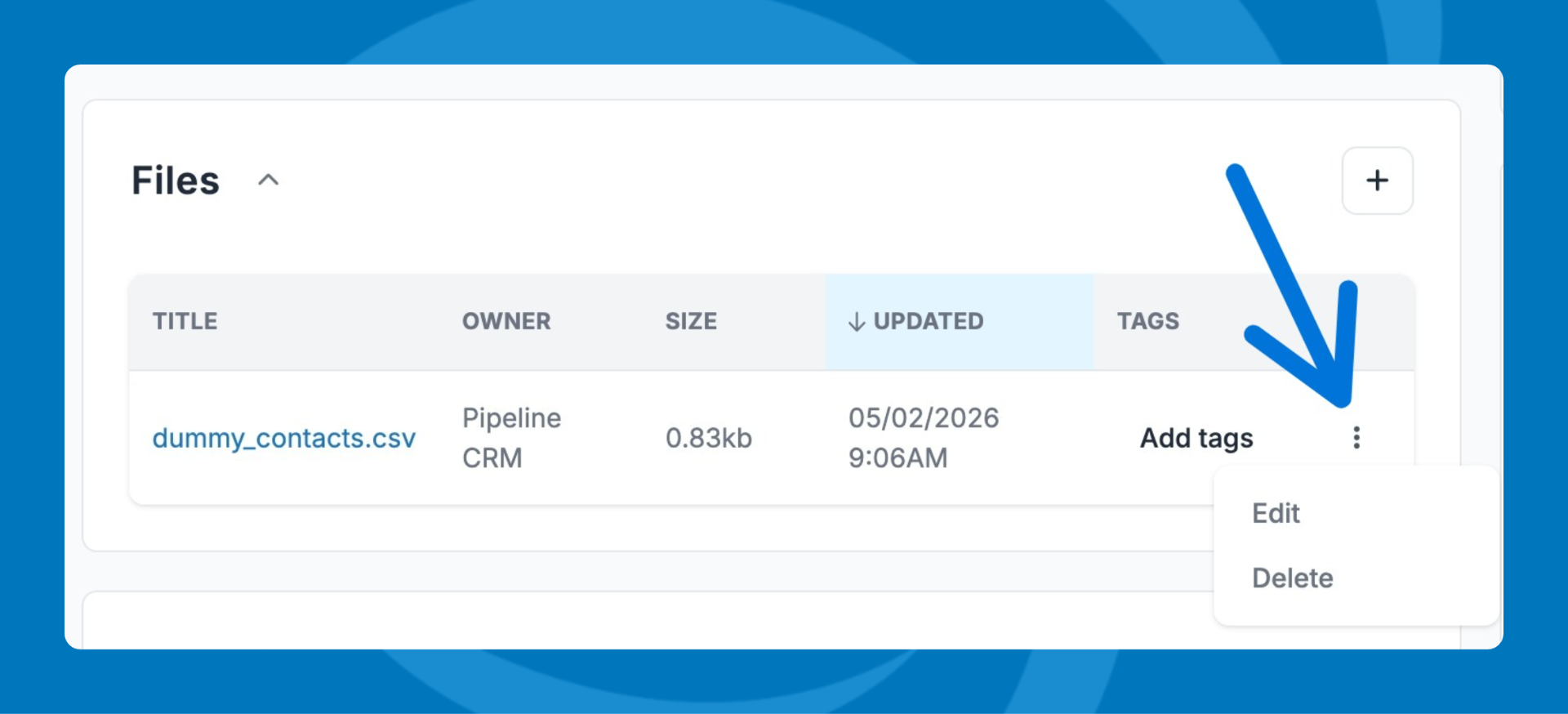 - Click the three dot menu to edit the name or delete the file.