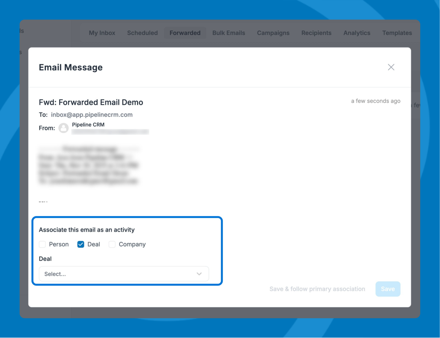 - Make sure you’re sending the email from an address linked to your Pipeline CRM account.