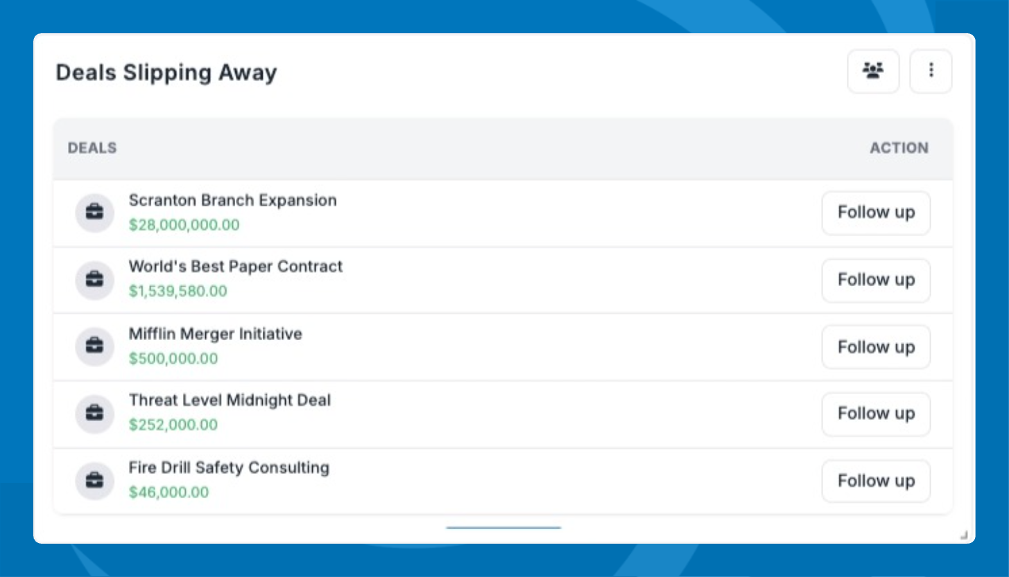 - Open the deal and schedule a follow-up to clear the indicator.