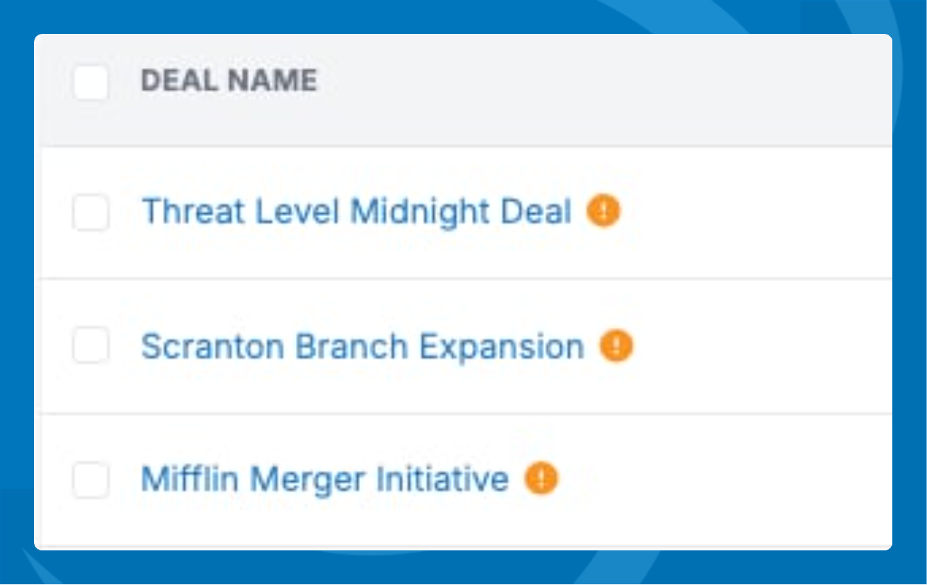 - Look for any deal with an orange! icon next to the deal name.