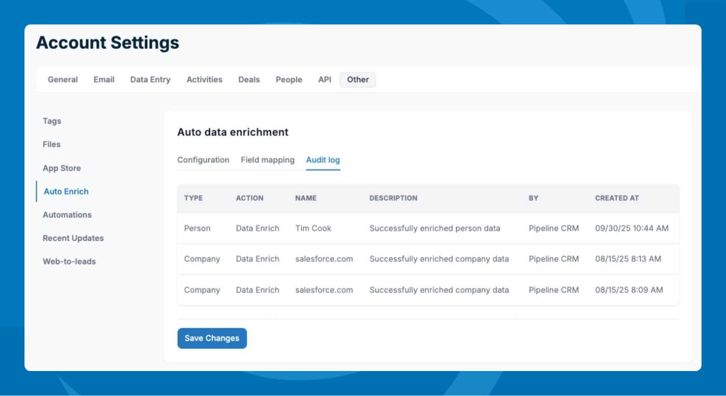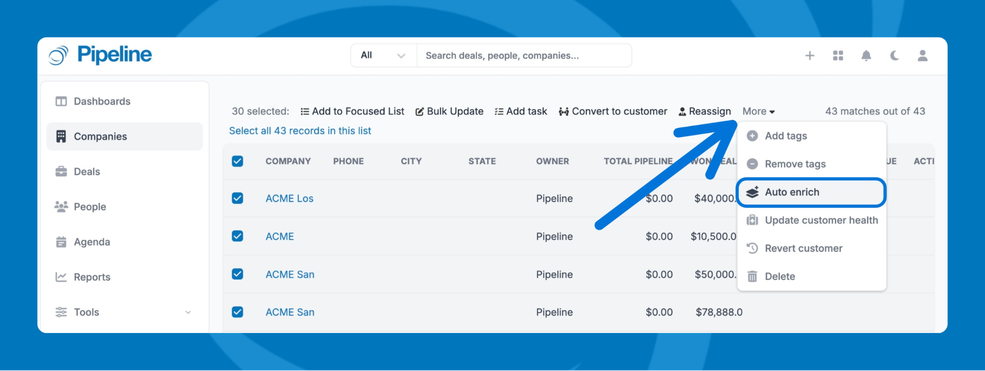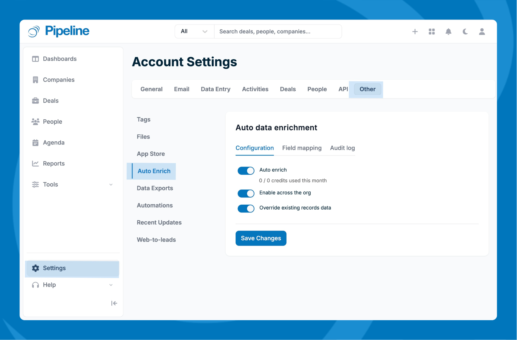 Auto Enrich lets you control how incoming data populates your Pipeline CRM fields.