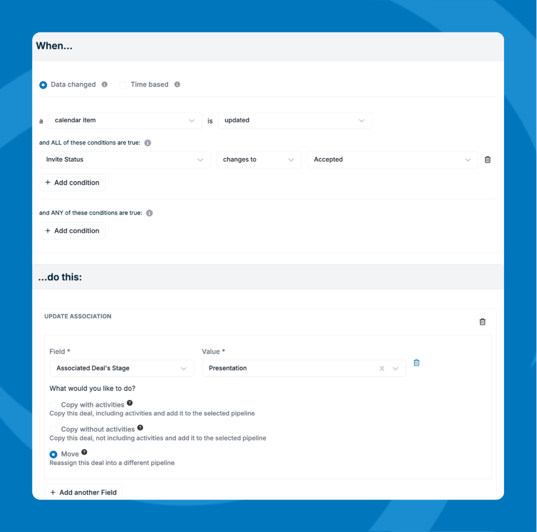 - Declined â Move deal to an alternate stage (e.g., "No Show")