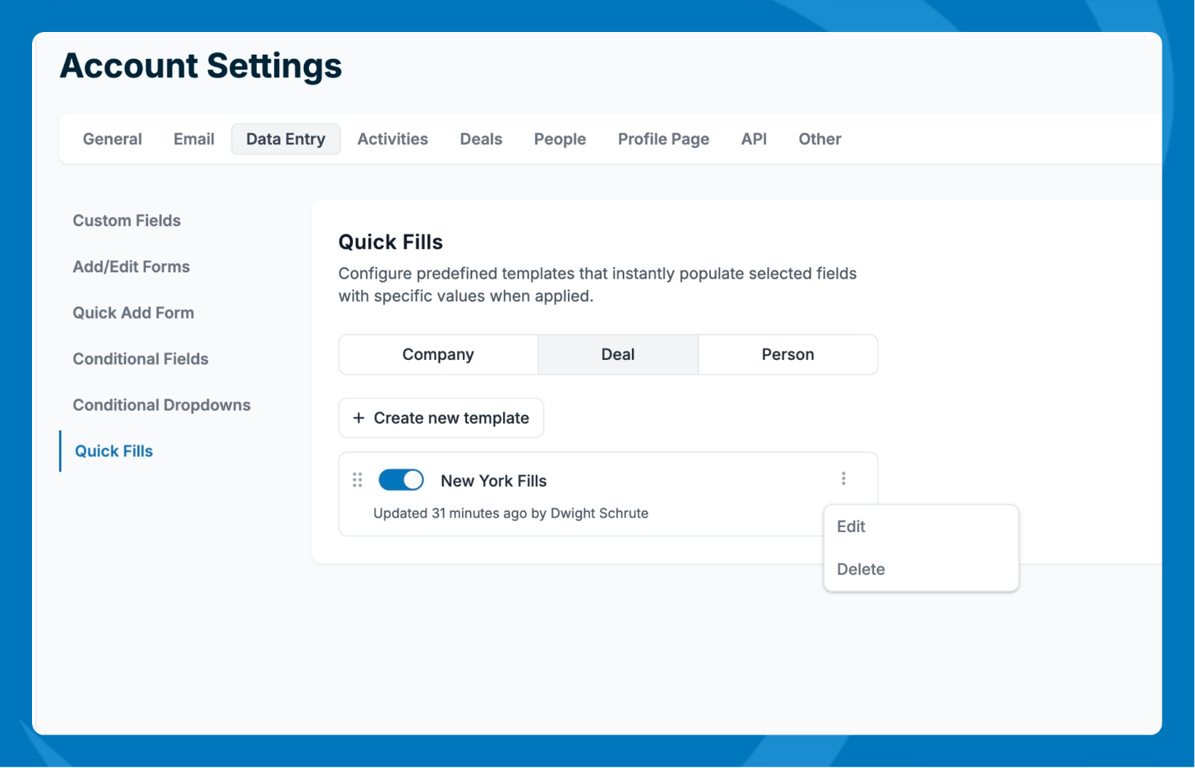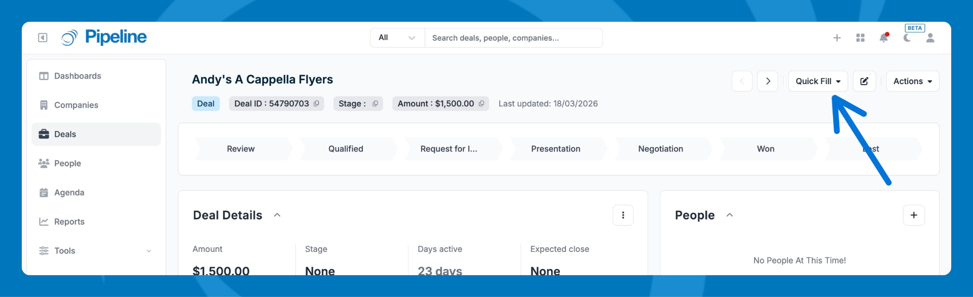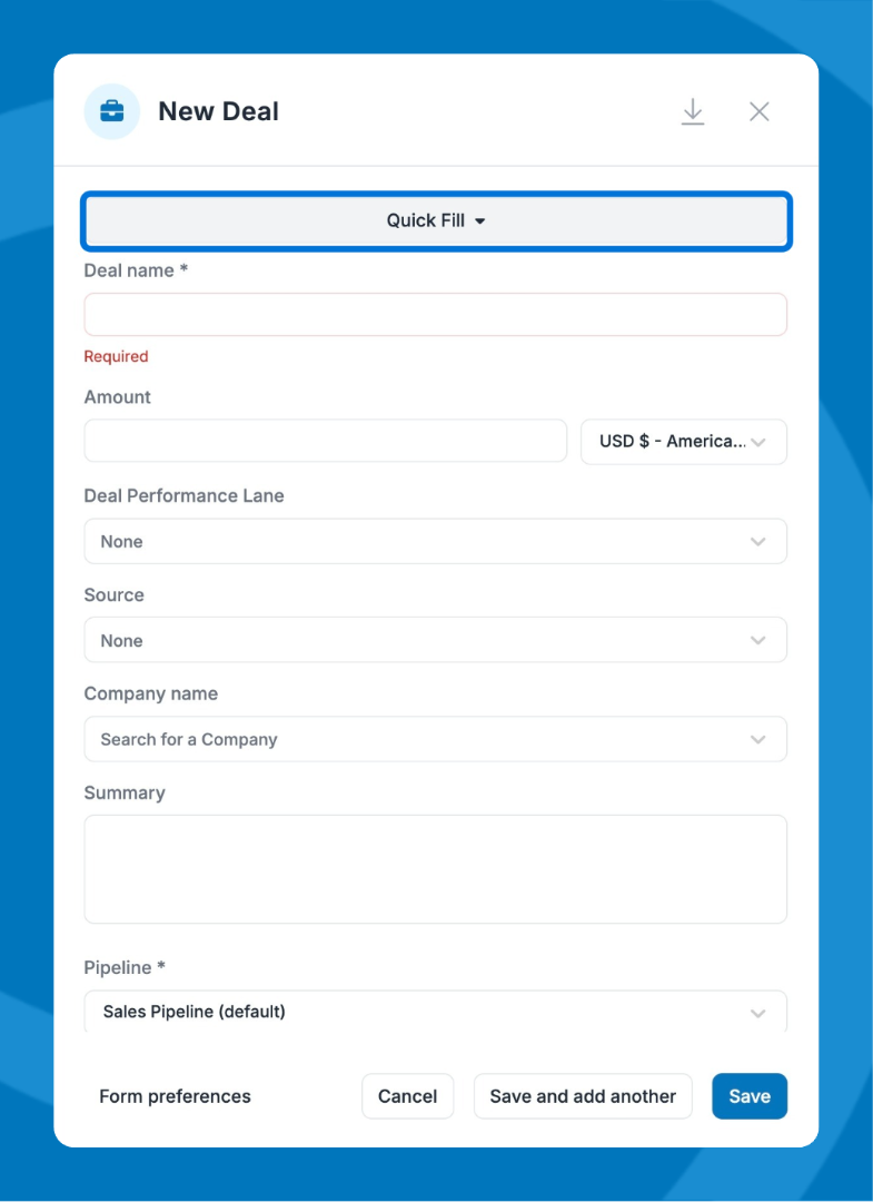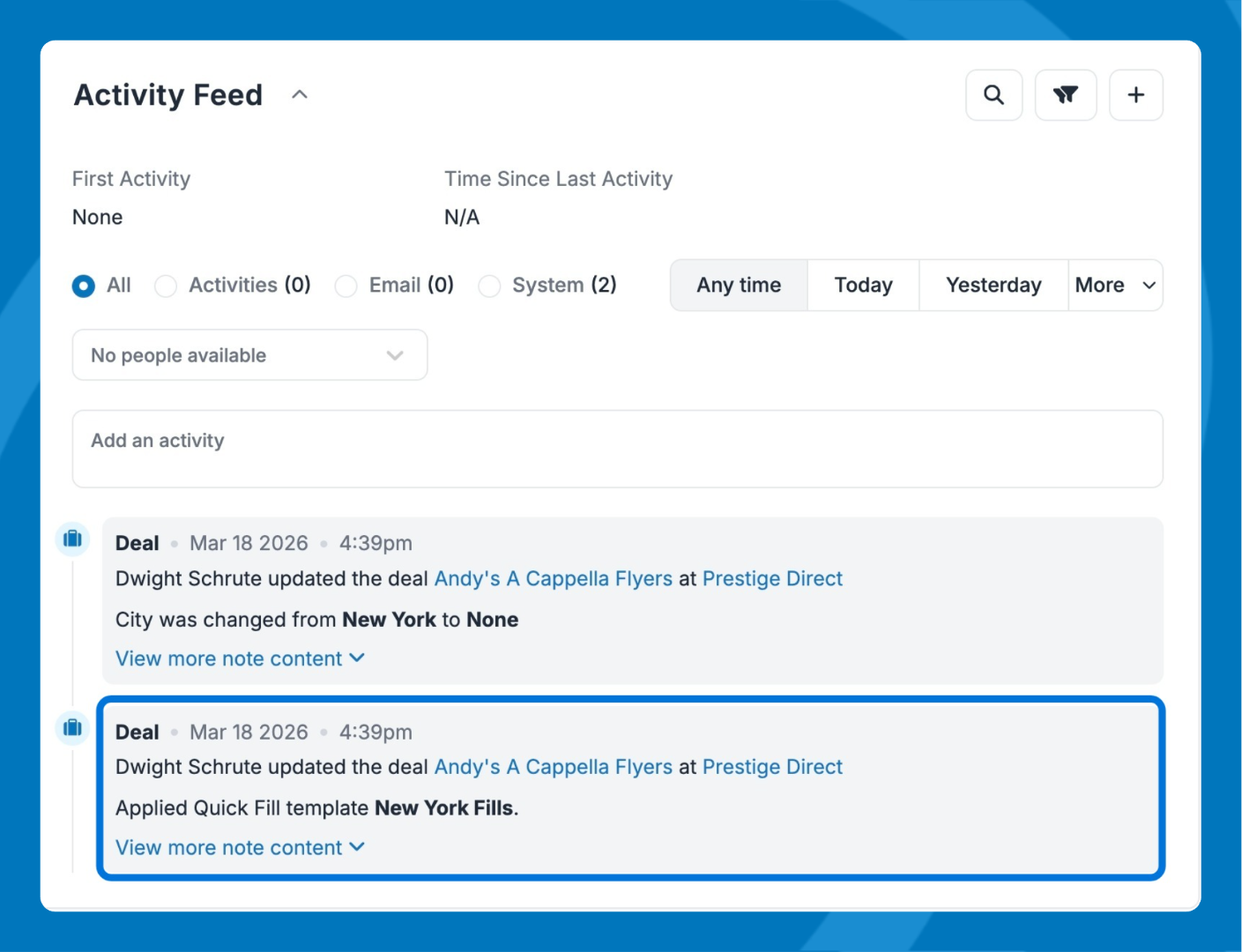Note: Quickfill changes are logged as a system update in the record's activity history, so you can see exactly what was changed and when.