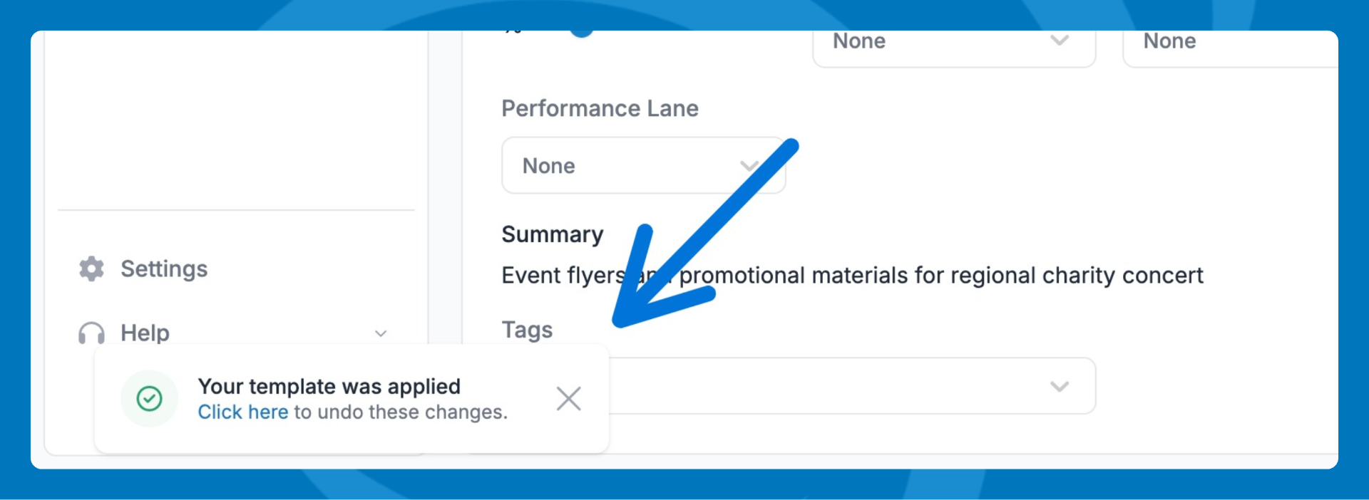 - After applying a template, you will be prompted to undo the template in the lower left corner.
